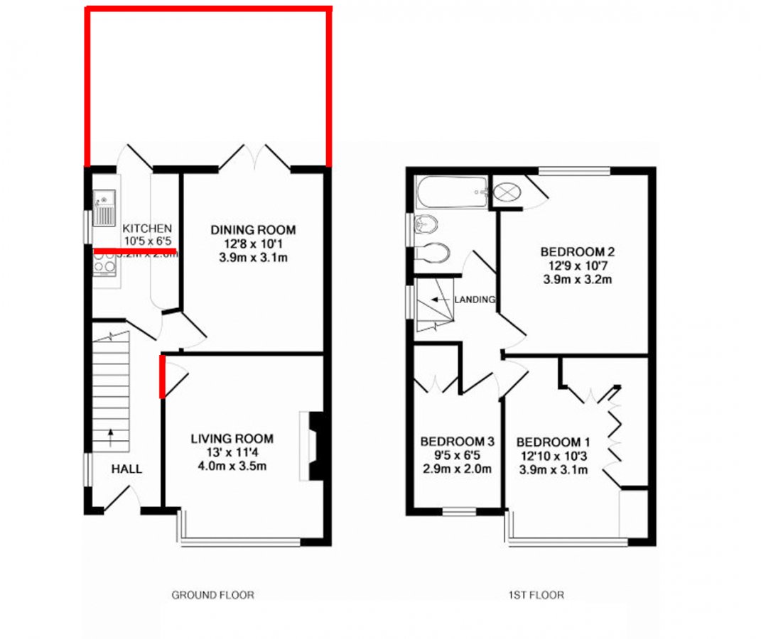 3 Bed Semi Side Extension Floor Plans